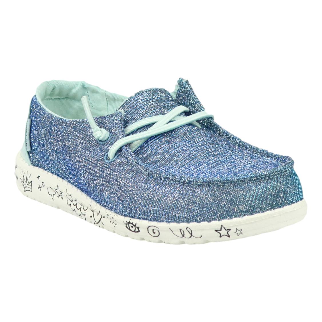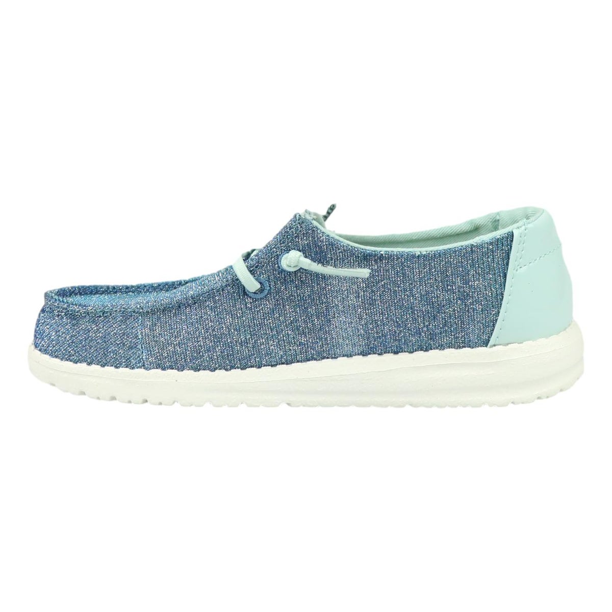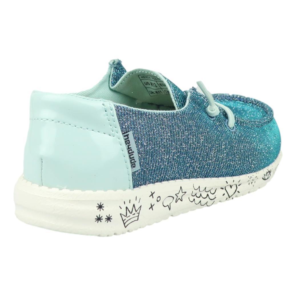 HeyDude Wendy Youth on kesän mukavin kenkä lapsille. Kenkä on höyhenen kevyt ja ulkopohja joustaa kuin vaahtokarkin päällä kävelisi. Lesti on reilu, sinne mahtuu hyvin kaikki varpaat mukaan ja pukeminen on helppoa venyvien nauhojen ansiosta. Tässä mallissa yhdistyy niin paljasjalkakengän pehmeys/joustavuus kuin lenkkareiden iskuja vaimentava pohja. Rento ja siisti kenkä kesän kaikkiin menoihin rannalta kaupunkiin. Sopii niin hameen/mekon/shortsien/leggareiden kuin farkkujenkin kanssa. Todellinen kesän yleiskenkä ja lasten supersuosikki.