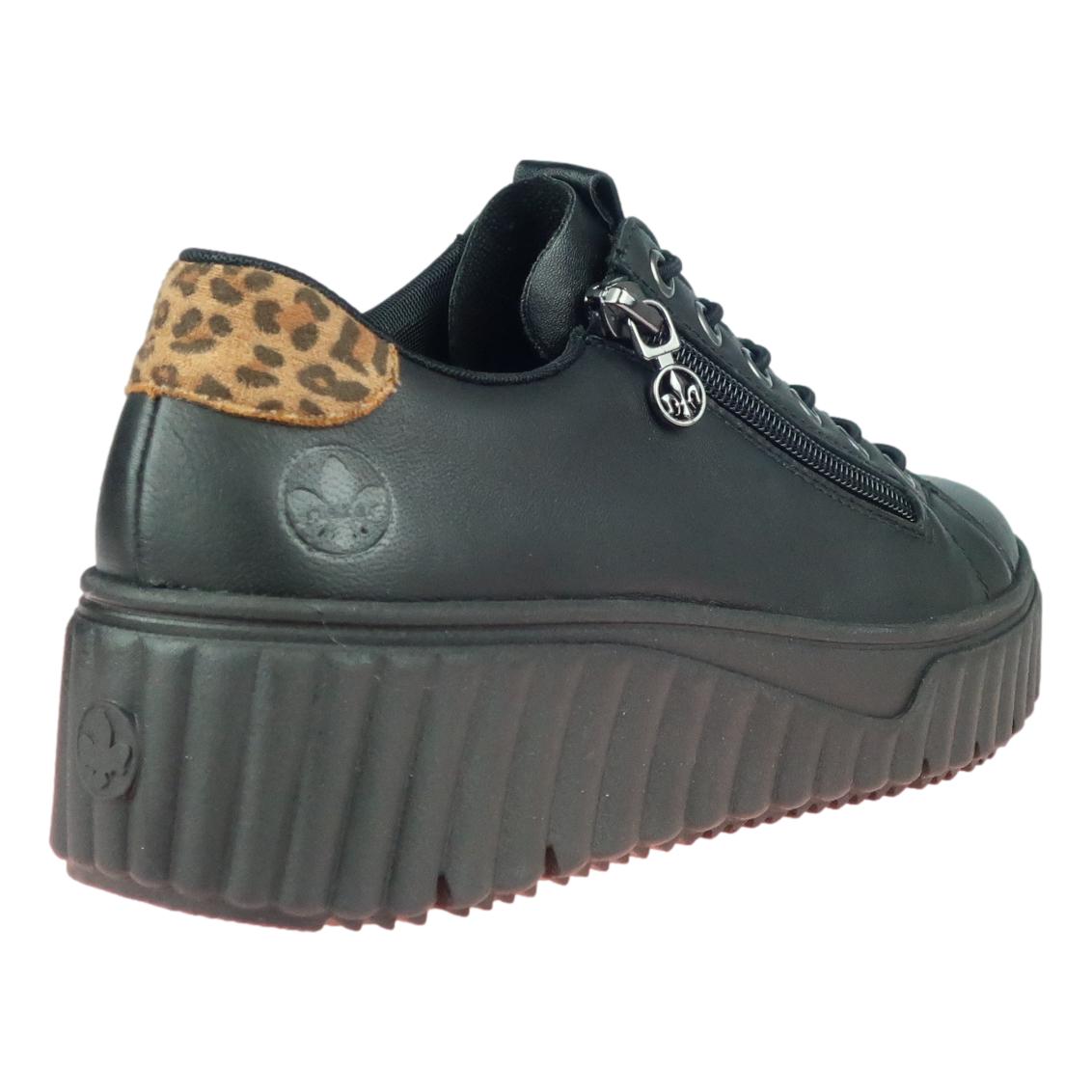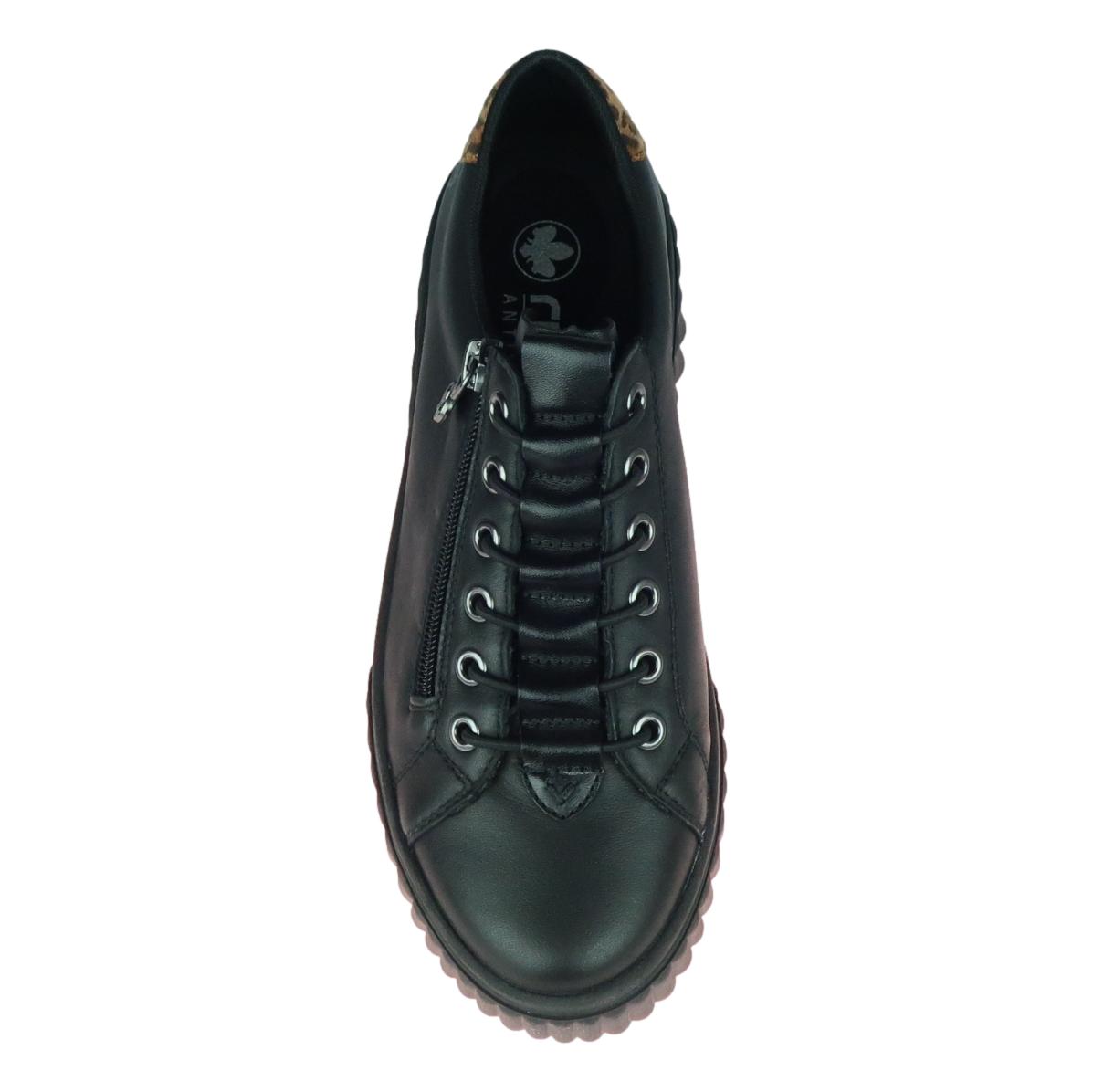 Tennarimaiset kävelykengät ovat tämän kesän ehdoton hitti. Tässä Riekerin mallissa on todella kevyt ja paksu ulkopohja joka on erittäin mukava. Päällinen on nahkaa/synteettistä materiaalia ja vetoketjun ansiosta nämä ovat helppo pukea. Upeat musta väri ja pehmeä sisäpohja tuntuu todella mukavalta.