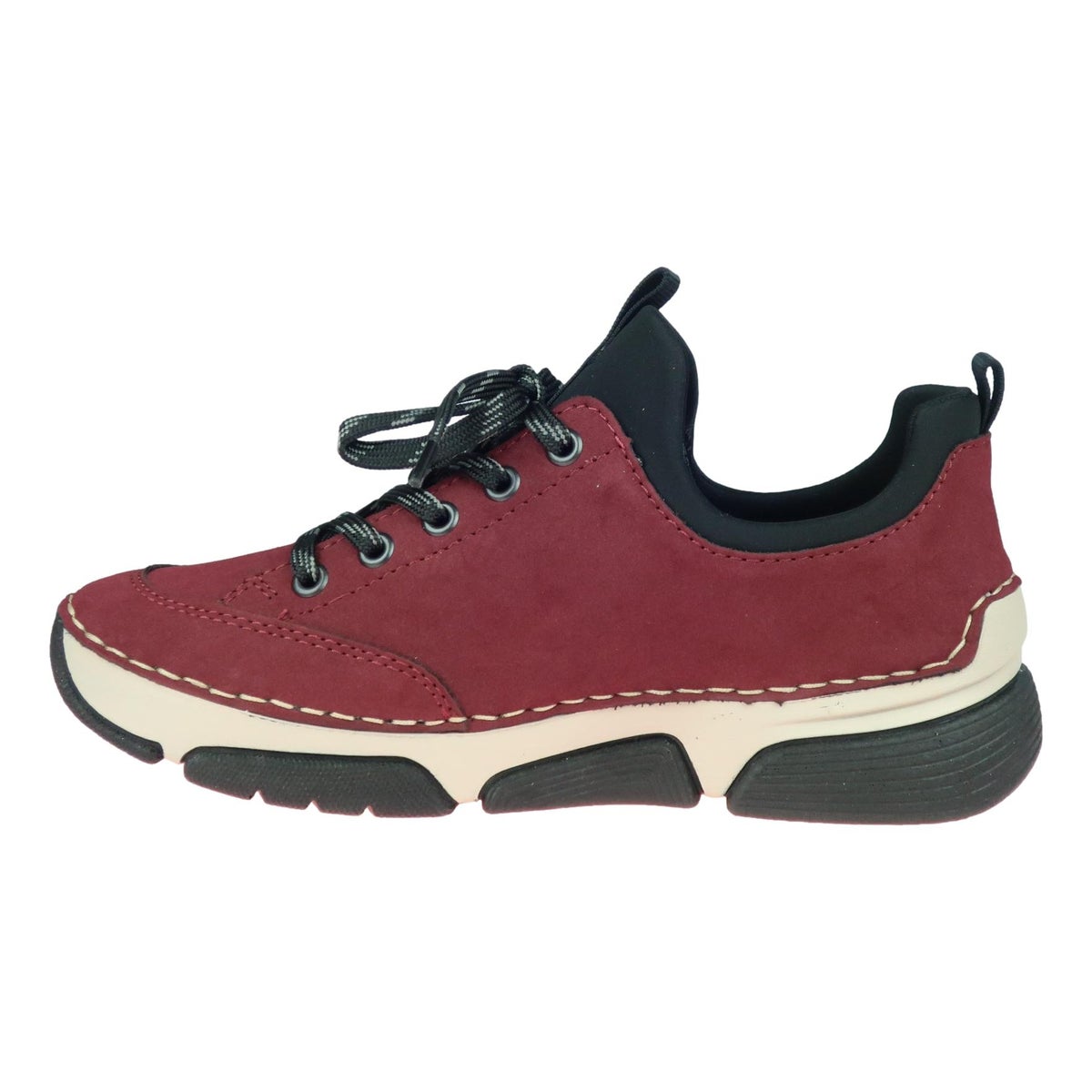 Rento Rieker kaupunkitennari venyvällä päällisellä. Päällinen joustaa ja kengät onkin vain helppo vetää jalkaan. Pienet yksityiskohdat antavat kengälle mukavan ilmeen. Irroitettava sisäpohja, voit käyttää halutessasi omia muotopohjallisia. Päällinen on synteettistä materiaalia ja pohja on kevyt ja taipuisa. Vetoketju ulkosyrjässä on tässä mallissa vain koristeena.