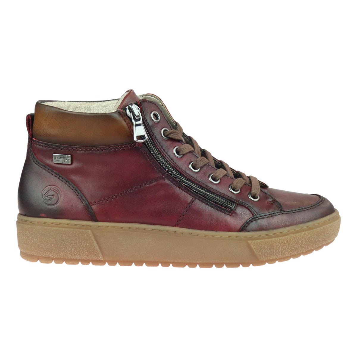 Nyt on hienot, hieman sporttiset, rennon tyylikkäätRemonte nilkkurit. Päällinen on pehmeää nahkaa ja sen alla oleva RemonteTex-kalvo pitää jalat kuivina kosteillakin keleillä. Vuori on tekstiilivuori, joka sopii erinomaisesti syksyn ja alkutalven menoihin. Vetoketjulla helppo pukea. Upea viininpunainen väri.