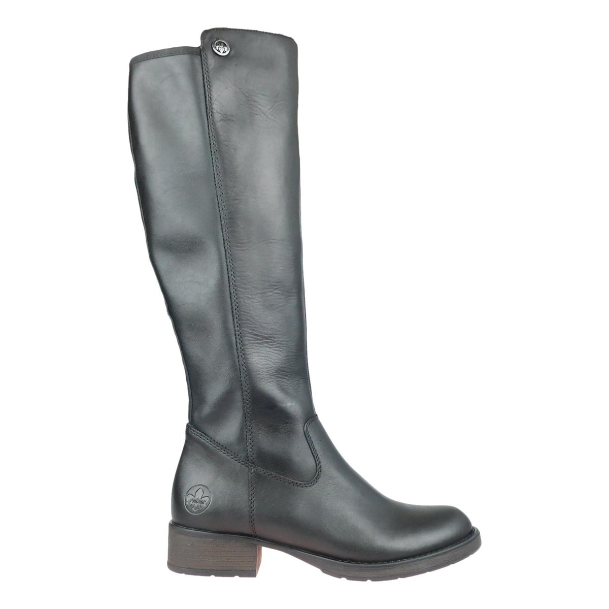 Todella kaunis, nahkainen Rieker saapas. Päällinen on pehmeää nahkaa. Varsi joustaa ja muotoutuu pohkeeseen erittäin hyvin. Todella kauniit esim. hameen kanssa käytettäessä kun varsi ei purista eikä jää löysäksi. Lesti on mukavan reilu, kaikki varpaat mahtuu mukavasti mukaan ja ulkopohja on sopivan jämäkkä talvikäyttöön. Erinomainen valinta kun haluat kohtuuhintaiset, nahkaiset, hyvin istuvat saappaat!