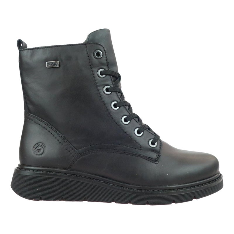Nahkainen Remonten maihari uudella pohjalla ja uudella hienolla värillä, petroolilla.. Vetoketjulla saat kengät helposti jalkaan ja nauhoilla saat säädettyä kengät sopiviksi. Lämmin fleecevuori ja pehmeä päällisen nahka tuntuvat miellyttäviltä. Pohja näyttää raskaalta mutta on silti mukavan kevyt ja joustava.