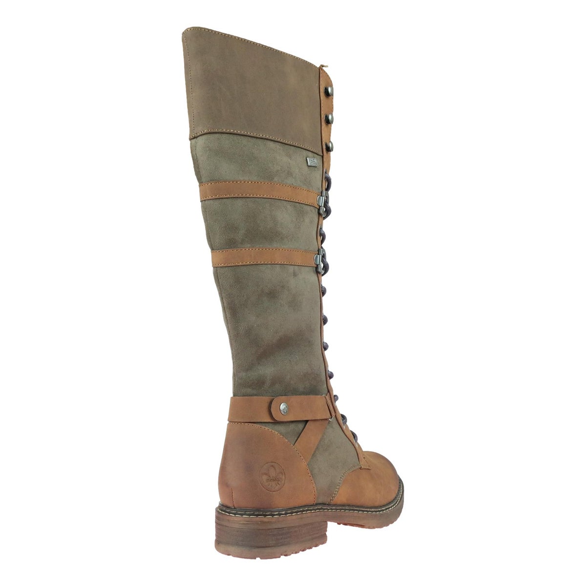 Aivan huikean hieno ruskea nauhasaapas, Rieker. Nauhoilla saat säädettyä varren leveyttä aina XL-leveyteen saakka. Vetoketjulla kengät on helppo pukea jalkaan ja pitävä pohja pitää pystyssä hieman liukkaammallakin kelillä. Kauniit yksityiskohdat tekevät näistä saappaista sopivan näyttävät ja kauniit käyttökengät.