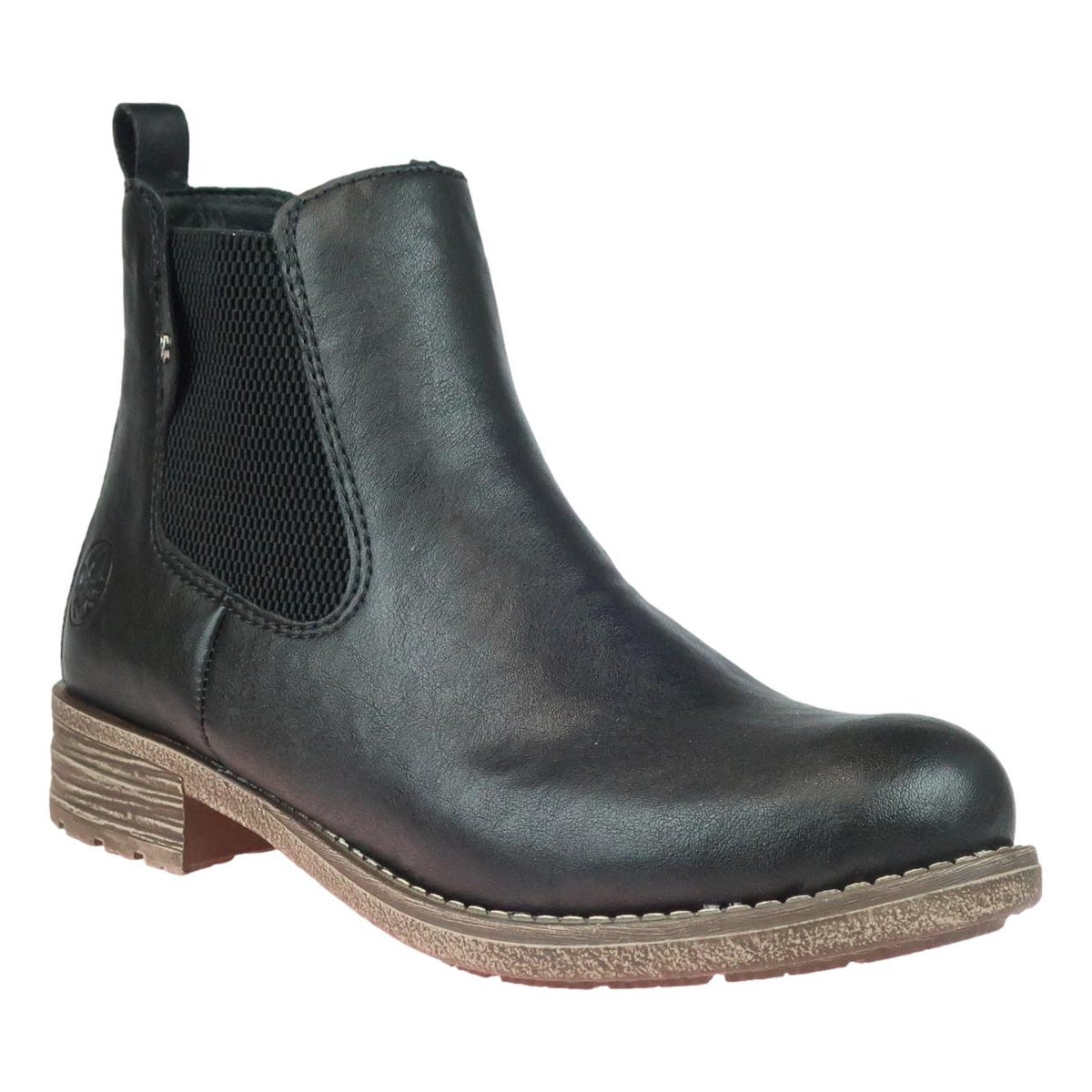 Rennon tyylikäs Rieker venykenilkkuri vettähylkivällä päällisellä. Saat kengät vain vetämällä jalkaan ja kuminen ulkopohja on pitävä talvellakin. Ohut lämmin vuori.