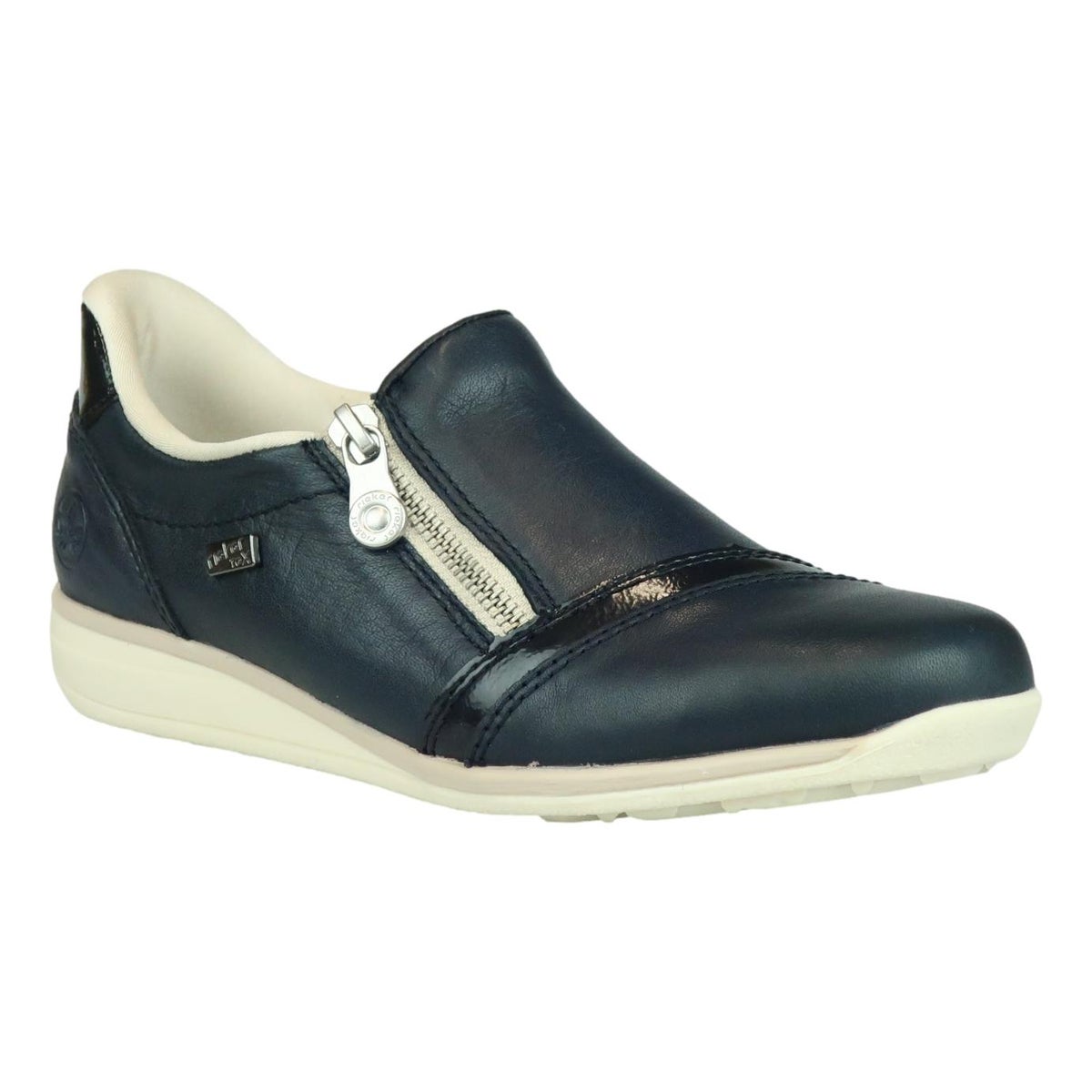 Rento ja mukava Rieker READY2GO-kävelykenkä vettähylkivällä kalvolla. Erikoismuotoillun kantakapin ansiosta saat kengät vain painamalla jalkaan. Ei enää kumartelua tai nauhojen sitomista. Päällinen on mukavan pehmeää nahkaa ja pohja on kevyt ja joustava. Vetoketju helpottaa pukemista entisestään.Tämä on reilu ja monikäyttöinen kävelykenkä arjen menoihin.